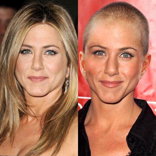 Jennifer Aniston nigdy nie obcinała włosy na zero. Foto trafiło do sieci i wielu użytkowników uwierzyło, łącznie z nami! Okazało się, że zdjęcie zostało stworzone w Photoshop!