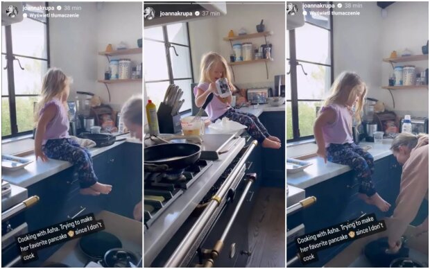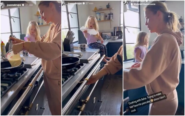 Joanna ugotowała córce ulubione naleśniki, które ta uwielbia. Modelka jasno określiła swoje umiejętności kulinarne: gotowanie nie jest jej mocną stroną. Jednak życzenia jej córki są prawem.