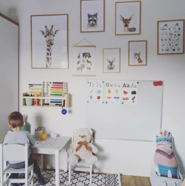 Widzimy, że mama chłopca zainspirowała się nowymi trendami i postawiła na białe ściany pomieszczenia. Nie brakuje w nim też miejsca do zabawy, ale też do nauki. Internautkom spodobały się zwłaszcza plakaty na ścianie z uroczymi zwierzakami oraz pomysł z tablicą.