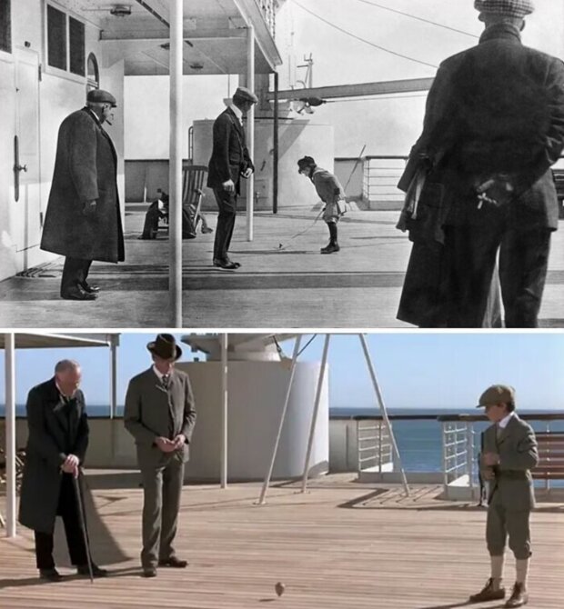 Historyczna autentyczność stała się "punktem" dla reżysera Jamesa Camerona. Na przykład scena z chłopcem bawiącym się na pokładzie odtwarza zdjęcie wykonane 11 kwietnia 1912 roku na pokładzie prawdziwego Titanica przez jezuickiego nowicjusza Francisa Browna.