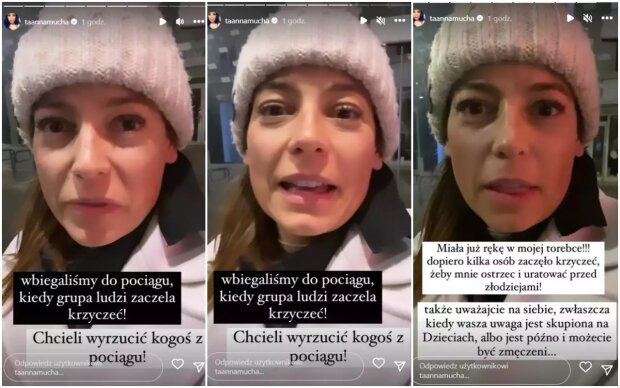 Aktorka opowiedziała, co się wydarzyło po wejściu do przedziału, gdzie usłyszeli głośne krzyki.