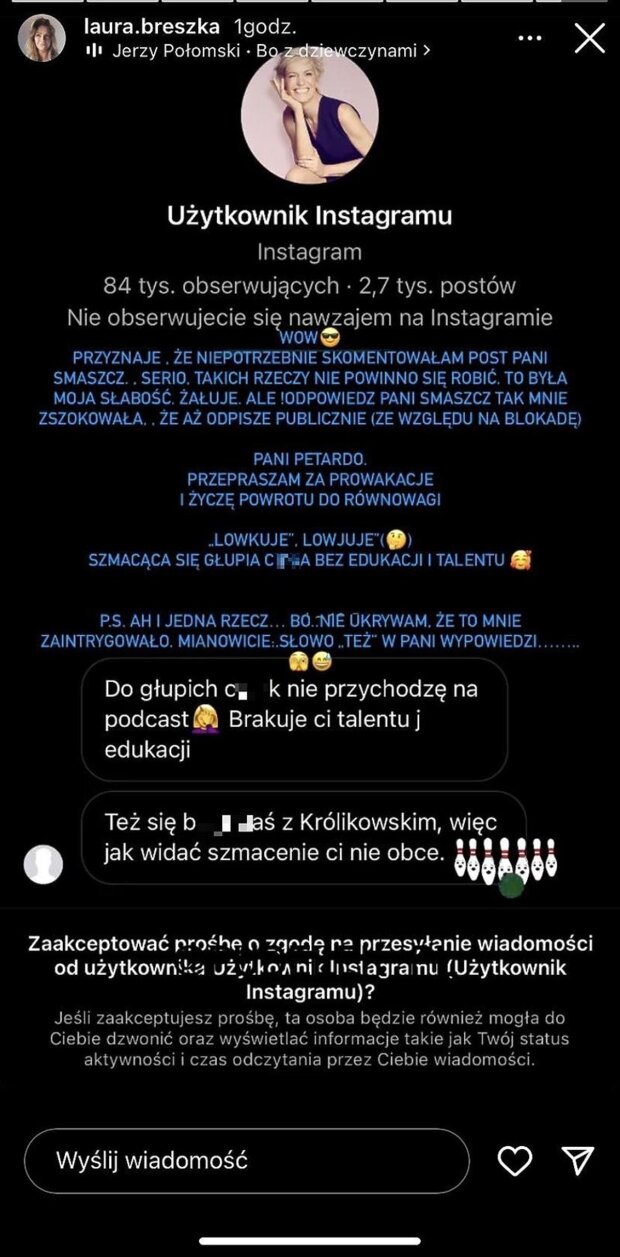 Wszystko zaczęło się od komentarza Laury Breszki na instagramowym profilu dziennikarki. Co się dokładnie stało? Sprawdźcie szczegóły.