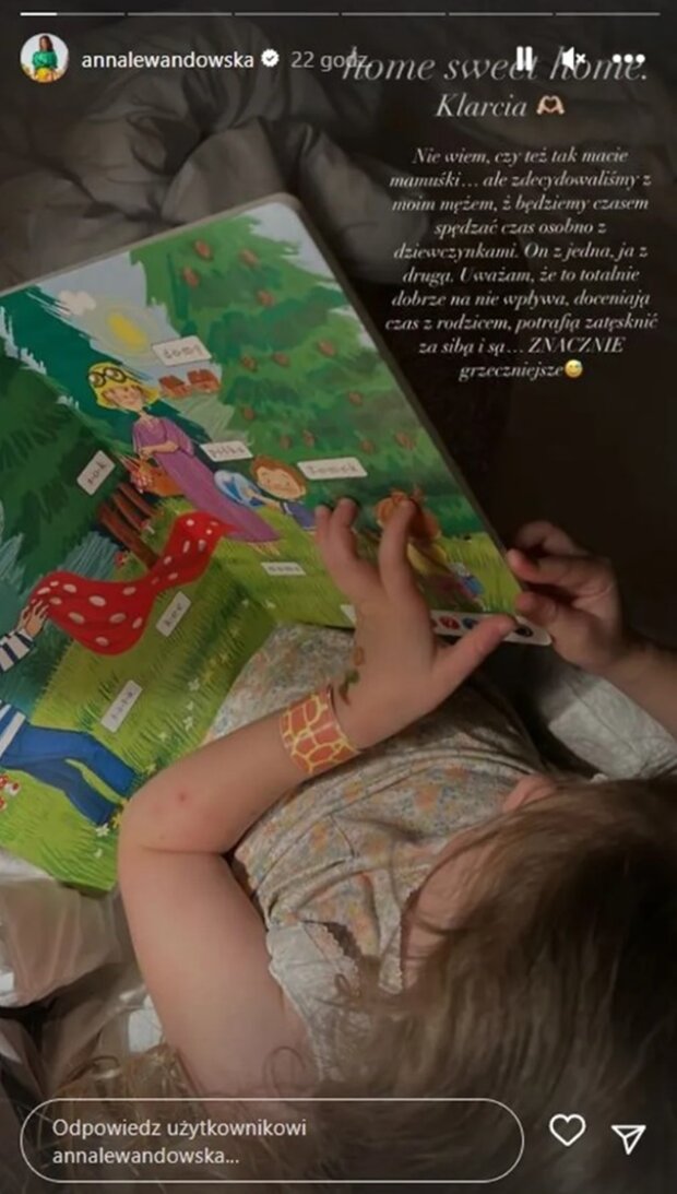 Nie wiem, czy też tak macie mamuśki... ale zdecydowaliśmy z moim mężem, że będziemy czasem spędzać czas osobno z dziewczynkami. On z jedną, ja z drugą. Uważam, że to totalnie dobrze na nie wpływa, doceniają czas z rodzicem, potrafią zatęsknić za sobą i są... ZNACZNIE grzeczniejsze - napisała na Instagram Stories Lewandowska.