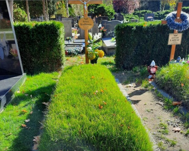 Pierwszy nagrobek Barbary Krafftówny był skromny, zieloną trawą pokrytym kopczykiem i krzyżem z tabliczką.