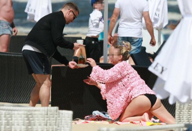 Tancerz miał na sobie krótkie spodenki i kurtkę. Za to jego partnerka zaszalała. Na kuse bikini nałożyła jedynie płaszczyk w stylu futerka. I gdy tylko wyszło słońce, zrzuciła je, by się poopalać. Oczom plażowiczów ukazała się wtedy nie tylko obłędna figura kobiety, ale i jej ogromny tatuaż, który przykrył niemal całe plecy.
