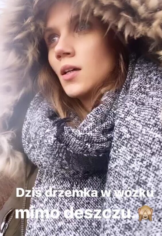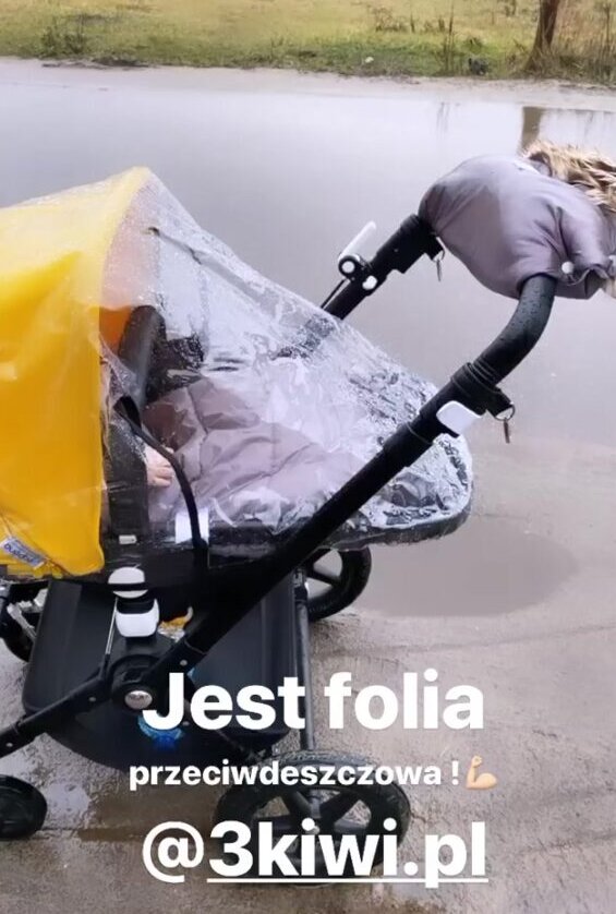 Spacer trzeba było zrobić, bo za dużo ludzi w domu i Emi by nie zasnęła przy tych hałasach. Jest deszcz, jest mokro i to nawet bardzo, ale jak to mamy i babcie mawiały, z cukru nie jesteś, nie rozpuścisz się.- mówiła Kaczorowska na InstaStory