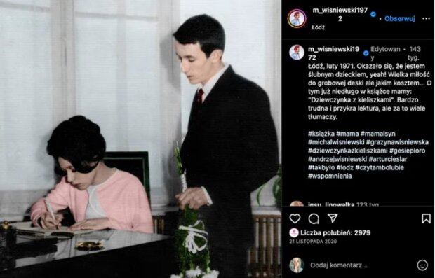 Łódź, luty 1971. Okazało się, że jestem ślubnym dzieckiem, yeah! Wielka miłość do grobowej deski, ale jakim kosztem – napisał Wiśniewski pod zdjęciem rodziców.