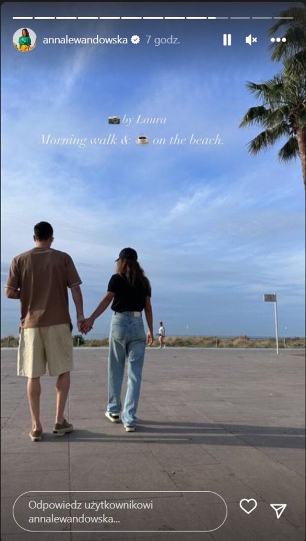Teraz na Instagramie Anny Lewandowskiej pojawiło się kolejne zdjęcie, wykonane przez ich córkę Laurę. Na tym ujęciu widzimy zakochaną parę podczas porannego spaceru, a Robert mocno trzyma rękę Ani.