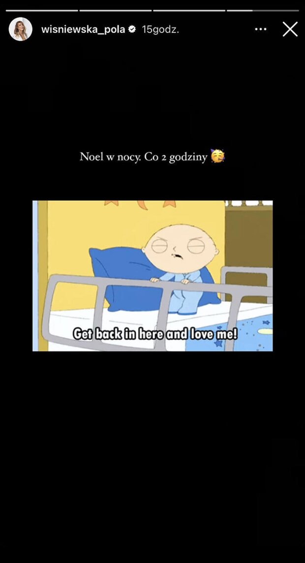 Choć para nie mówi zbyt wiele o swoim życiu rodzinnym, to Pola postanowiła opowiedzieć swoim obserwatorom na Instagramie, z czym muszą się mierzyć każdej nocy. Opublikowała krótki filmik z kreskówki, na którym postać krzyczy z łóżka:
