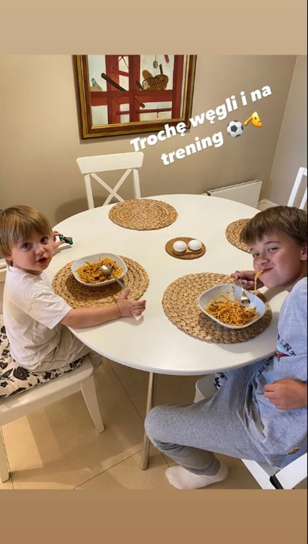 Trochę węgli i na trening – poinformował w opisie fotografii, na której chłopcy zajadają się makaronem.