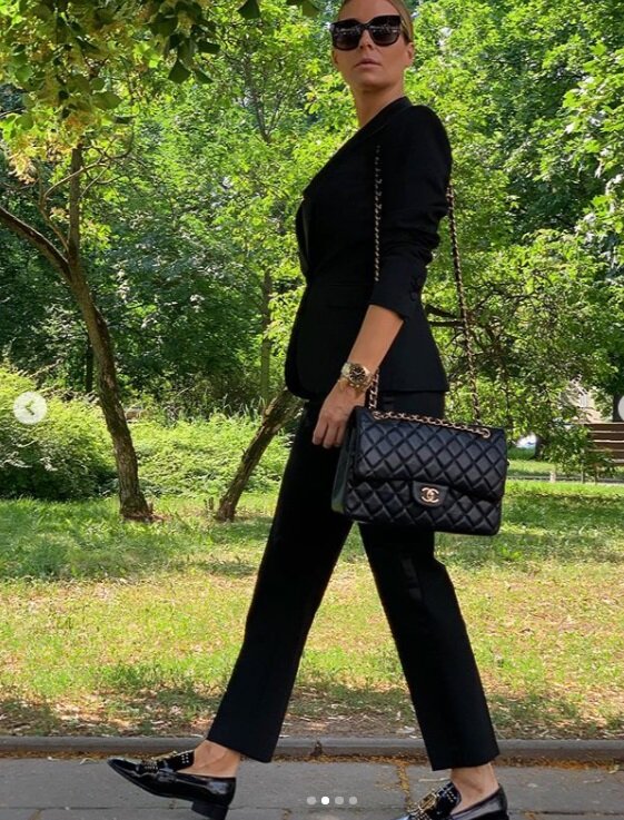 Tym razem Małgorzata ubrała się elegancko. Skąd garnitur? Ze znanej marki Zara. Idealny komplet na spotkania biznesowe, do pracy lub na inne ważne wydarzenie. Natomiast aksesoria Malgorzaty była nie zbyt tania. Czarne mokasyny ze złotymi detalami marki Dior oraz pikowaną torebkę na łańcuszku od Chanel.