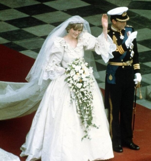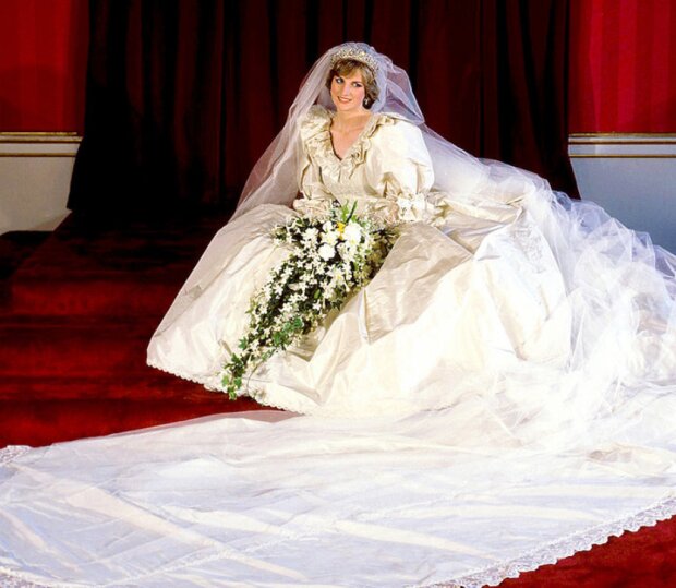 Księżna Diana i książę Karol powiedzieli sakramentalne "tak" 29 lipca 1981 roku. Suknię księżnej Diany zaprojektowali Elizabeth i David Emanuel. Uszyto ją z jedwabnej tafty w kolorze kości słoniowej i ręcznie wykonanej, starej koronki. Zdobiły ją dodatkowo hafty, cekiny i perły. Do historii przeszedł jej liczący ponad siedem metrów tren.