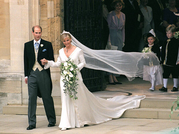 Najmłodszy syn Elżbiety II wziął ślub z Sophie Rhys-Jones 19 czerwca 1999 roku. Suknia Sophie zaprojektowała Samantha Shaw została wykonana z ręcznie barwionej, jedwabnej organzy. Również w kolorze kości słoniowej, ręcznie wszyte rzędy pereł i kryształków (łącznie było ich aż 325 000).