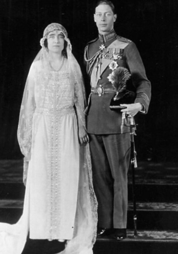 Matka królowej Elżbiety miała jedwabną suknię ślubną zaprojektowaną przez Madame Handley-Seymour - krawcową królowej Marii. Suknia ślubna była w kolorze kości słoniowej, haftowana perłami i srebrną nicią.