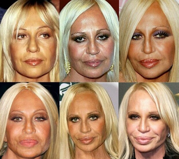 65-letnia projektantka mody oraz wiceprezes domu mody Versace przeszła kilka zabiegów powiększania pośladków, piersi i kilkakrotnie zmieniała twarz.