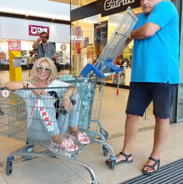 Celebrytka będąc na zakupach w centrum handlowym postanowiła obudzić w sobie wewnętrzne dziecko i tym samym weszła do wózka na zakupy.