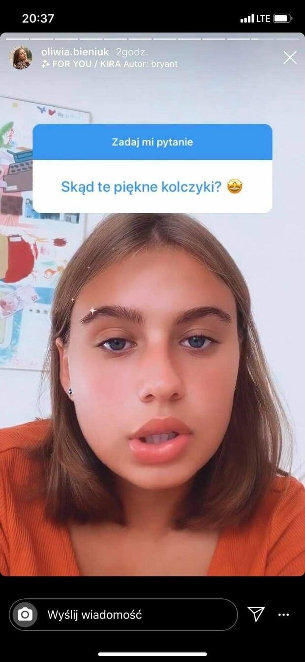 Nastolatka tylko od niedawna stała aktywną na swoim Instagram. Ostatnio komunikowała się ze swoimi internautami na InstaStories. Dla niej zadawali różne pytania, na które ona chętnie odpowiedziała. Jedno z pytań zabrzmiało, skąd ona ma takie piękne kolczyki, które miała na sobie.