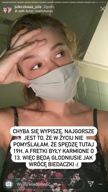 Z każdej godziny spędzonej w poczekalni Julka zdawała konkretną relacje. Na końcu jednak zaczęła się martwic o swoje fretki, a z jej objawów lekarze zdiagnozowali wyłącznie niestrawność...