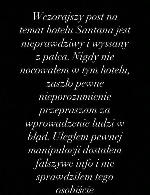 Co ciekawe, hotel ten jest położony w sąsiedztwie Martyniuków. Czy była to więc zemsta za jakieś sąsiedzkie porachunki? Trudno powiedzieć. Jednak kilka godzin po wyznaniu, Daniel wypuścił także na InstaStories oficjalne przeprosiny.
