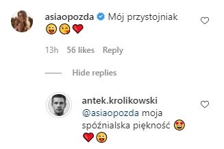 Antek Królikowski nie ukrywa swoich uczuć. W swoich social mediach gwiazdor dzieli się wspólnymi zdjęciami ze swoją kochaną dziewczyną. Ostatnio zamieścił zdjęcie, gdzie pozuje na przemierzę filmu "Pętla", w którym zagrał. Na sobie miał szare spodnie, czarną koszule, granatową marynarkę i białe buty. Oczywiście pod zdjęciem Królikowskiego pojawiło się sporo komentarzy od internautów, wraz i komentarz samej Joanny Opozdy. Aktorka nie mogła nie napisać słodki komentarz dla swojego kochanego mężczyzny.