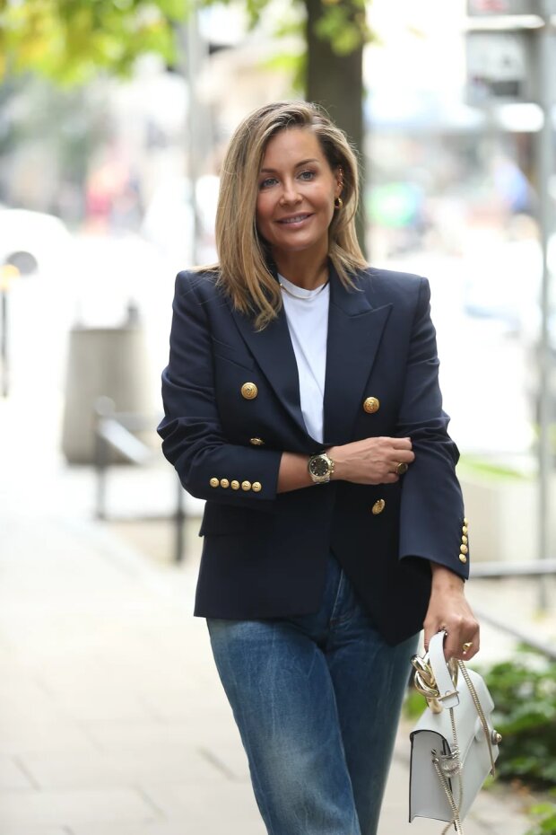 Znana z dobrego gustu Małgosia postawiła na elegancję i minimalizm. Perfekcyjna ubrana była w jeansy, białą bluzkę i granatową marynarkę ze złotymi guzikami.
