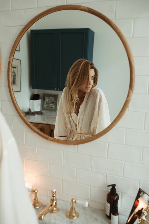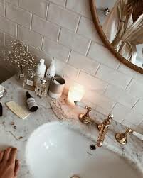 Całość idealnie uzupełniają złote dodatki, drewniane elementy oraz kolorowy akcent w postaci niebieskiej szafki. Surową biel ocieplają modne akcesoria takie jak świece i wazoniki z kwiatami. Kasia zadbała również o to, aby kosmetyki pasowały do całości, dlatego widzimy eleganckie opakowania, które dodają uroku i uzupełniają wnętrze. Dzięki temu łazienka staje się przytulnym miejscem idealnym na długie zimowe kąpiele i pielęgnacyjne rytuały idealne dla ciała i dla duszy.