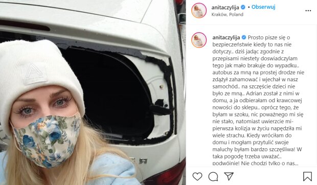 Na szczęście kobieta jechała sama, jej dzieci były wtedy bezpieczne z tatą. Jej także nic się nie stało, ale cała sytuacja była bardzo stresująca. Była uczestniczka show skorzystała więc z okazji i zaapelowała do swoich obserwujących o ostrożność.