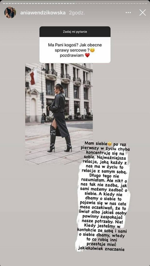 W swoich mediach społecznościowych Wendzikowska powiedziała, jak jest w jej życiu prywatnym. Czy naprawdę jej serce jest już zajęte?