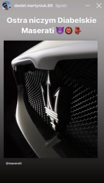 Otóż mężczyzna dodał na swoje Insta Story roznegliżowane zdjęcie swojej dziewczyny, która - co warto przypomnieć - jest młodą prawniczką, a zaraz po tym dodał do tego wymowny opis: "Ostra niczym diabelskie Maserati".