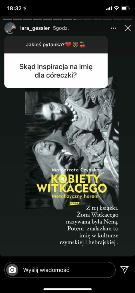 Większość ciekawiła, dlaczego Gessler wybrała takie nietypowe imię? Gwiazda w swoich mediach społecznościowych zdradziła. Okazuje się, że Gessler i Szeląg zainspirowali się książką Kobiety Witkacego. Metafizyczny harem autorstwa Małgorzaty Czyńskiej: