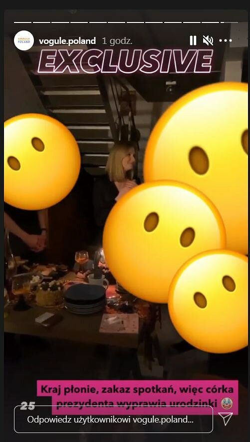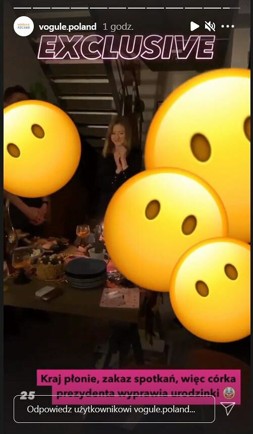 Chłopaki z Vogule Poland zrelacjonowali to, jak hałaśliwie Kinga Duda świętowała swoje 25-lecie. Na ich instagramowym profilu widzimy nagranie z imprezy. W towarzystwie wielkiego grona osób Kinga zdmuchiwała świeczki na torcie. Mimo panującej pandemii w całym kraju, córka prezydenta postanowiła na dobrą imprezę. Co o tym sądziecie?