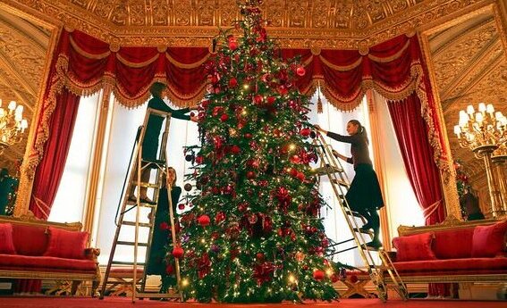Dwór królewski jest już przygotowany na Boże Narodzenie. Personel ubrał już 4,5 metrowe choinki.
