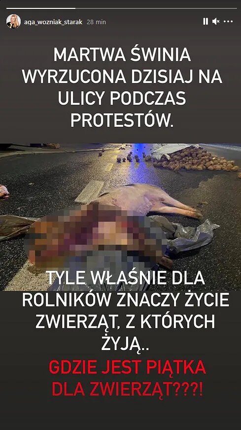 Martwa świnia wyrzucona dzisiaj na ulicy podczas protestów. Tyle właśnie dla rolników znaczy życie zwierząt, z których żyją… Gdzie jest "Piątka dla zwierząt