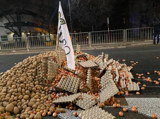 Producenci mają dzisiaj bardzo duży problem rolny i z jajami i z ziemniakami. Dlatego tutaj sypiemy to co trzeba. Takie mamy podziękowanie dla prezesa Jarosława Kaczyńskiego za to, że nie dba o polskich rolników. (...) Tu są tysiące jajek wyrzuconych, jest kapusta, której rolnicy nie mogą sprzedać. Jest też policja