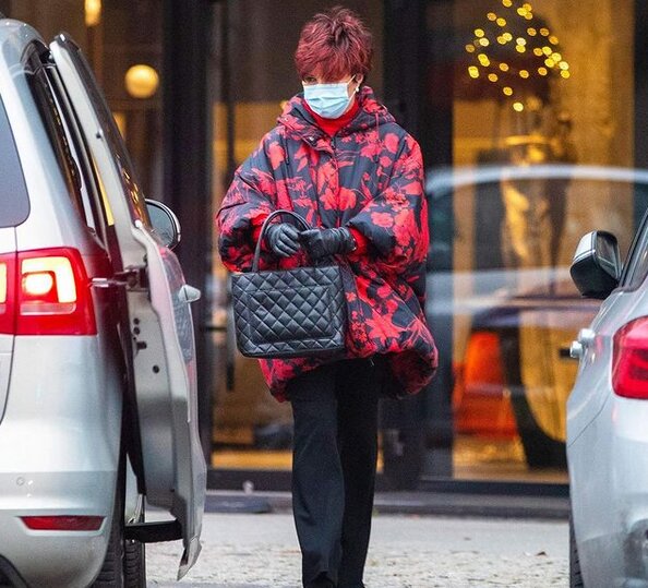 Miała na sobie stylową czarno-czerwoną kurtkę, czarne spodnie, buty na obcasie i luksusową torebkę znanej francuskiej projektantki, za którą zpewne zapłaciła krocie. Kwaśniewska ma już jakiś czas inny kolor włosów.
