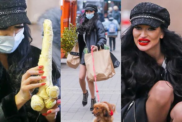 Cierpliwość fotoreporterów się opłaciła. Małgosia z uśmiechem nawiązywała nowe znajomości. Kupiła skórzaną kamizelkę, jemiołę i ... dorodną (!) pietruszkę! Postanowiła uczynic z tego niezłe show!