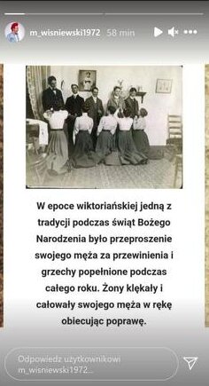 W epoce wiktoriańskiej jedną z tradycji podczas świąt Bożego Narodzenia było przeproszenie swojego męża za przewinienia i grzechy popełnione podczas całego roku. Żony klękały i całowały swojego męża w rękę obiecując poprawę