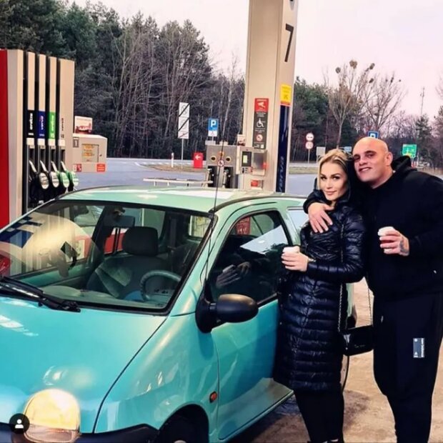 Dodał zdjęcie ze stacji benzynowej, gdzie razem z Igą tankują swoje stare auto.
