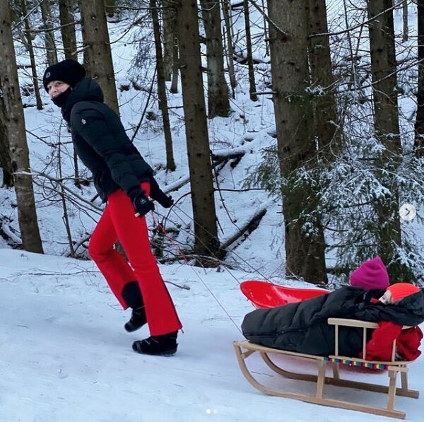 Małgosia Socha na swoim profilu w mediach społecznościowych zamieściła zdjęcie z zimowych zabaw z dziećmi. Widzimy uśmiechnietą aktorkę ciagnącą sanki po zaśnieżonej drodze...