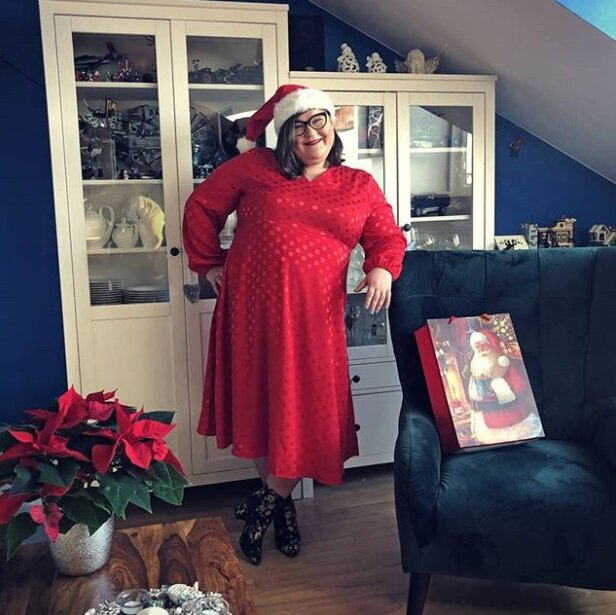 Ostatnio aktorka podzieliła się mikołajkowem zdjęciem. Na nim ona wygląda ślicznie i radosnie. Na sobie ma długą czerwoną sukienkę i oczywiście świąteczną czapkę Mikołaja.