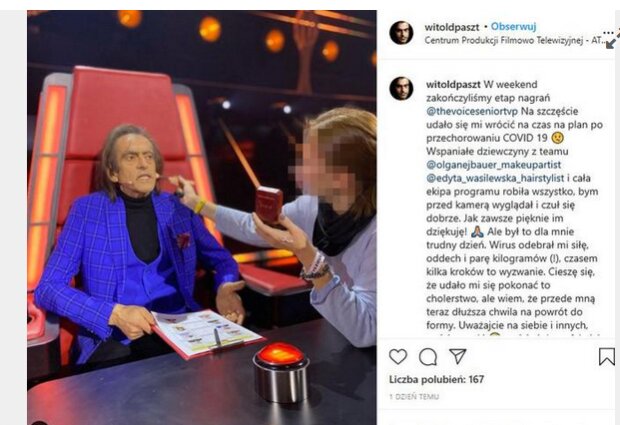 Witold Paszt ma 68 lat. Jest jurorem programu "The Voice Senior". Kilka miesiecy temu bardzo ciężko przeszedł zakażenie wirusem Covid 19. Dzis sam mówi, że to było dramatyczne przeżycie. Mimo, że wyszedł z choroby to do tej pory nie czuje sie najlepiej.