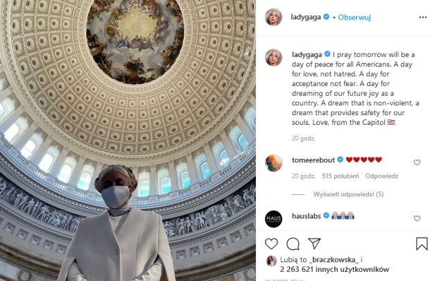 Przed zaprzesiężeniem Lady Gaga postanowiła pójść na Kapitol, gdzie nedawno niestety doszło tam do wielu zamieszek.