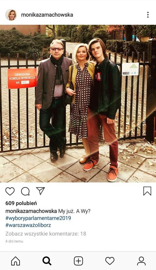 Tym samym, na Instagramie Monika postanoowiła wypromować syna, pisząc: „Mój syn, Tomek, po raz drugi jako Marcin Olszewski w serialu "Szkoła", premiera jutro, odcinek 744, polecam. Tym razem główna rola: Marcin ma lekki autyzm, ale za to błyskawicznie uczy się grać w szachy i wygrywa turnieje online, przysparzając sobie w ten sposób nowych przyjaciół... i wrogów.” Zamachowska przypomniała także swoim fanom, że jej syn ma zespół Aspergera, stąd pewnie rola autystycznego nastolatka.