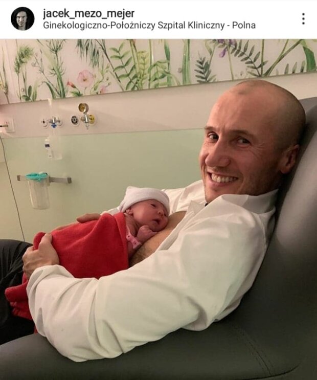 "Dziękuję najdzielniejszej żonie, która w tę cudowną noc (dokładnie o godzinie #dwa30) urodziła piękną córeczkę! Powitajcie na świecie Fridę Mejer. Malutka i zdrowa #wdzięczny" – napisał pod uroczym zdjęciem.