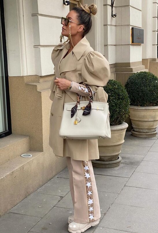 Tak było i tym razem, gdy Perfekcyjna postawiła na total look w kolorze modnego ostatnio beżu. Celebrytka do sportowych butów, dresów i ekstrawaganckich okularów przeciwsłonecznych, dobrała najnowszy trencz marki H&M, który został zaprojektowany we współpracy z irlandzką projektantką Simone Rocha.