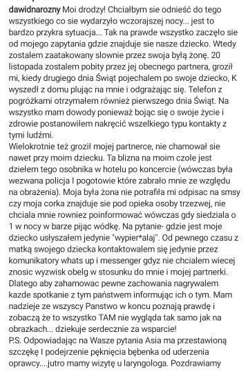 W Nowy Rok na instagramowym profilu partnerki Dawida ukazała się niepokojąca relacja. Na Instastories kobiety możemy zobaczyć zdjęcie kobiety ze szpitalnego SOR-u. Joanna zamieściła też mocne nagranie, na którym widać, jak wyciąga spray i rozpyla go w kierunku mężczyzny.