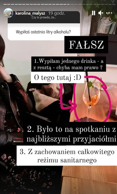 Jakiś czas temu w internecie krążyły także informacje o mocno zakrapianej imprezie, w której Karolina wzięła udział. Także o alkohol została zapytana.