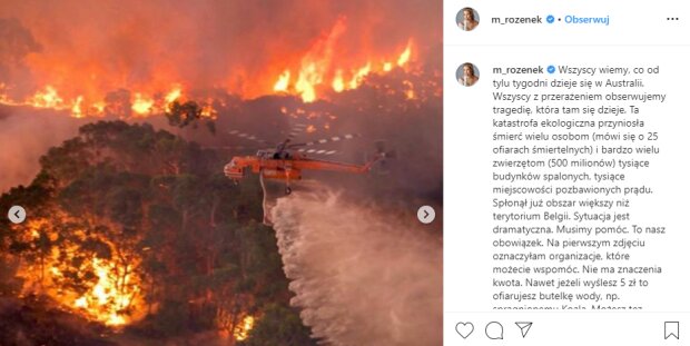 Do tego grona dołączyła też Małgorzata Rozenek, która zdecydowała się wesprzeć finansowo aż trzy fundacje na rzecz kraju walczącego z pożarami.