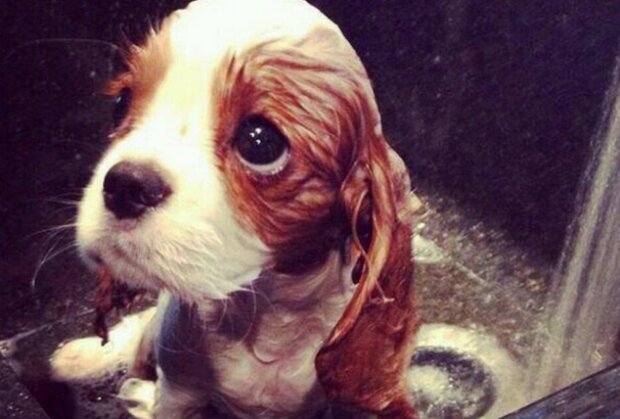 Zazwyczaj zwierzaki nie lubią kąpieli i ten przesłodki piesek chyba także nie jest fanem mokrych zabaw.