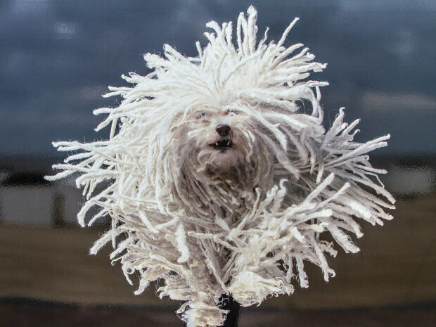 Briard to rodowity owczarek francuski, który tez należy do grupy psów pasterskich. Pierwsze informacje o tej rasie pojawiły się jeszcze w XII wieku. Sierść tego psa jest również dziwna, ponieważ z wyglądu jest bardzo podobna do sierści kozy. Właśnie dlatego Briard, podobnie jak Komondor, może łatwo schować się w stadzie kóz.